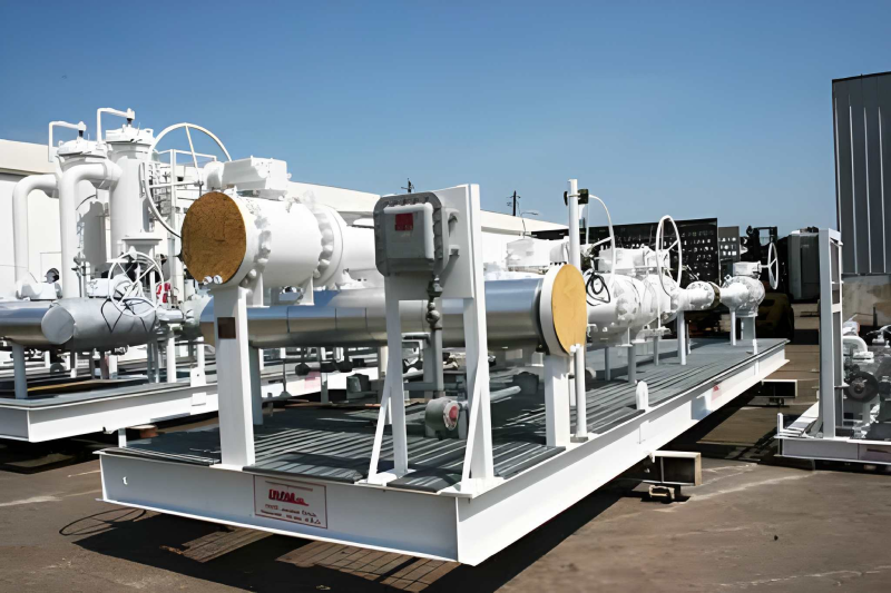 - Natural Gas Heating Skid (Water Bath Heater Skid) Heats the gas to 71ºC. Consists of Indirect Forced Draft Gas Fired Bath Heater sized for 11.7 MMBTU/Hour, North American Burner, Ignition Transformer, 10 HP Blower Motor and other accessories.