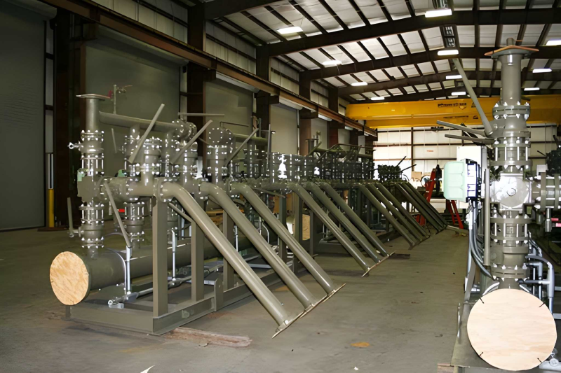 Production and Test Manifolds may be designed for ANSI and API ratings for various design pressures and various pipe sizes.