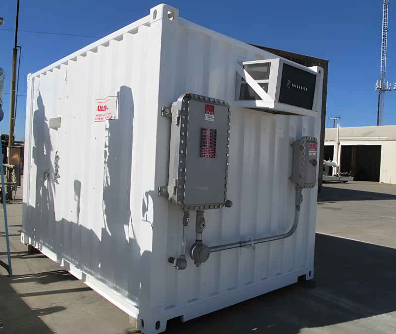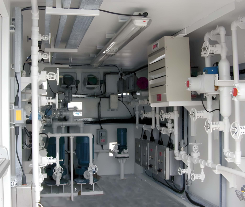 The quality analyzer system is assembled in an enclosed housing and is provided with appropriate ventilation, gas content alarm and fire alarm detector.